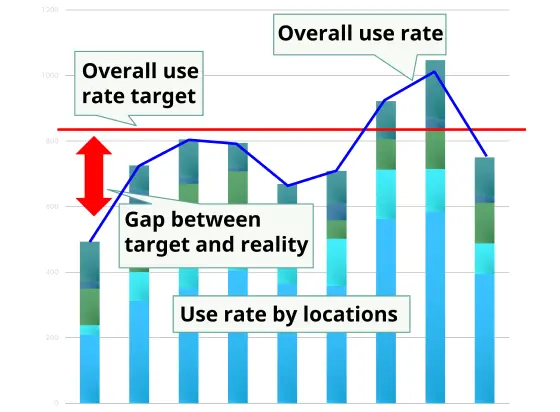 The usage status across all locations and at each location can be used to determine trends in the use of transportation equipment.