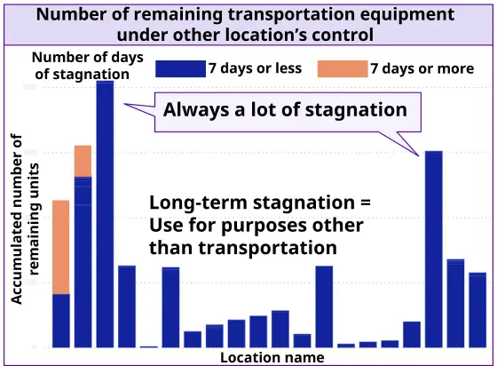 This information can be used to adjust for stagnation and uneven distribution to the location where the transportation equipment of other locations stays and is used for purposes other than its intended purpose.