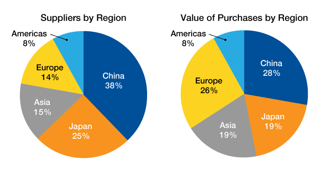The status of Alps Alpine’s supply chain is as follows. (As of March 2025)
