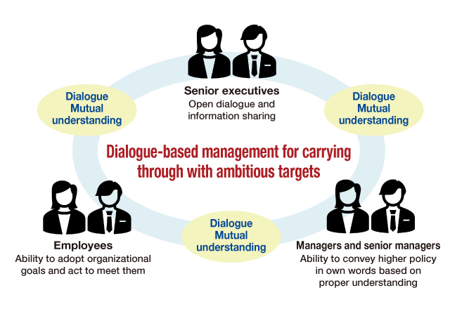 In fiscal 2023, training for the purpose of communicating roles and expectations was extended to assistant managers, who are leaders in the workplace and represent the company’s core. Our aim is to have management personnel interact closely with each employee and push them to challenge themselves.