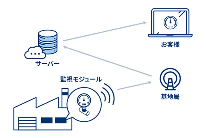 その効果は、たとえば人による点検工数の削減。遠隔監視サービスの導入により、広い構内を毎日巡回する点検をなくし、目視による読み取りや転記ミスを防ぎます。残量遠隔モニタリングサービスは液剤やガスの残量をシステム上で確認。履歴傾向から需要を予測できるので、発注漏れの防止にもつながります。また、遠隔監視のシステムは高所・狭所・暗所といった危険な場所の巡回を減らし、作業員の安全管理にも効果をもたらします。異常値アラートを導入すれば、設備の不具合にも迅速な対応が可能です。さらに、蓄積したデータの履歴から微細な変化を検証したり、傾向管理を業務改善に活用できます。生産体制の効率化、コストと品質の改善、働く人々の安心・安全、そして社会全体の労働力不足まで見すえたサービスです。