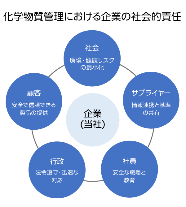 化学物質の使用に伴う環境リスク及び安全リスクを適切に管理し、事故の未然防止に努めることが、法令遵守に留まらず、事業所や周辺地域の安全と環境保全に対する社会的責任であると認識しています。